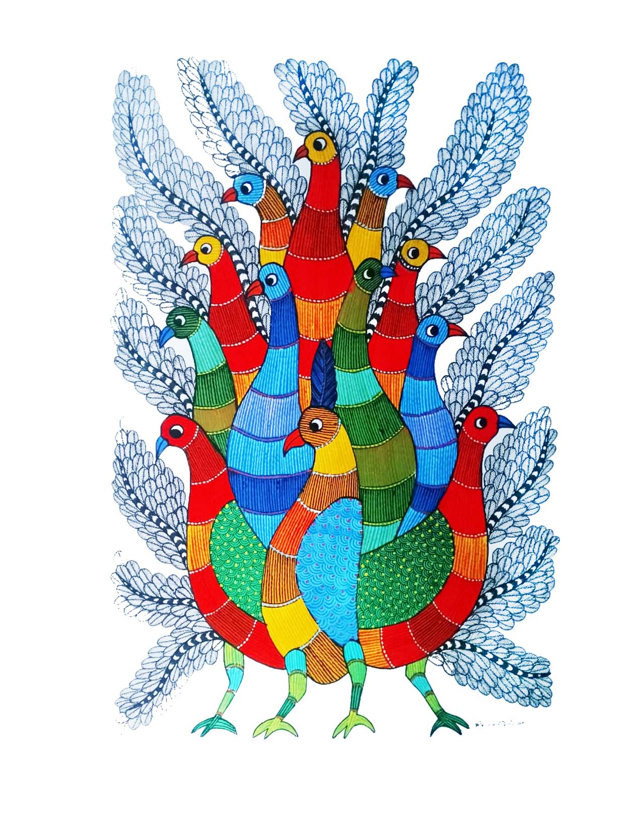 Gond Art Painting-Group of Peacocks